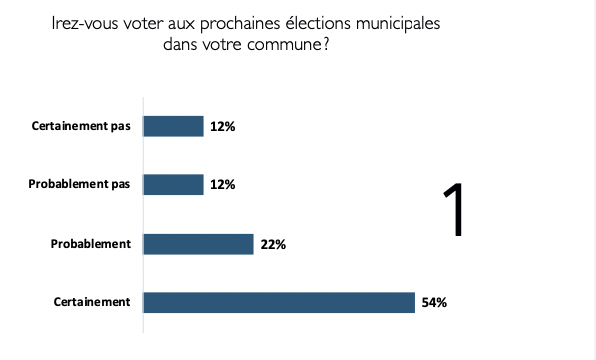 Interrogés sur leur intention de participation aux prochaines élections municipales, les répondants sont une large majorité à déclarer qu’ils iront voter. Dans le détail,54%indiquent qu’ils iront certainement voter, tandis que 22% déclarent qu’ils iront probablement voter. Un engagement fort qui avoisinerait le niveau de participation du premier tour des municipales de 2014, les élections de 2020 ayant été marquées par une plus forte abstention lors de ce premier tour organisé en pleine pandémie du Covid. Par ailleurs, cette projection de participation traduit un attachement persistant au cadre communal, perçu comme le niveau de décision le plus concret et le plus directement lié aux conditions de vie.
