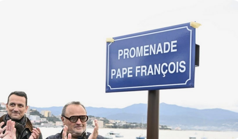 Image : Ville d’Ajaccio Un an après la visite historique du Pape François en Corse, le quai des torpilleurs à Ajaccio a été rebaptisé “Promenade…